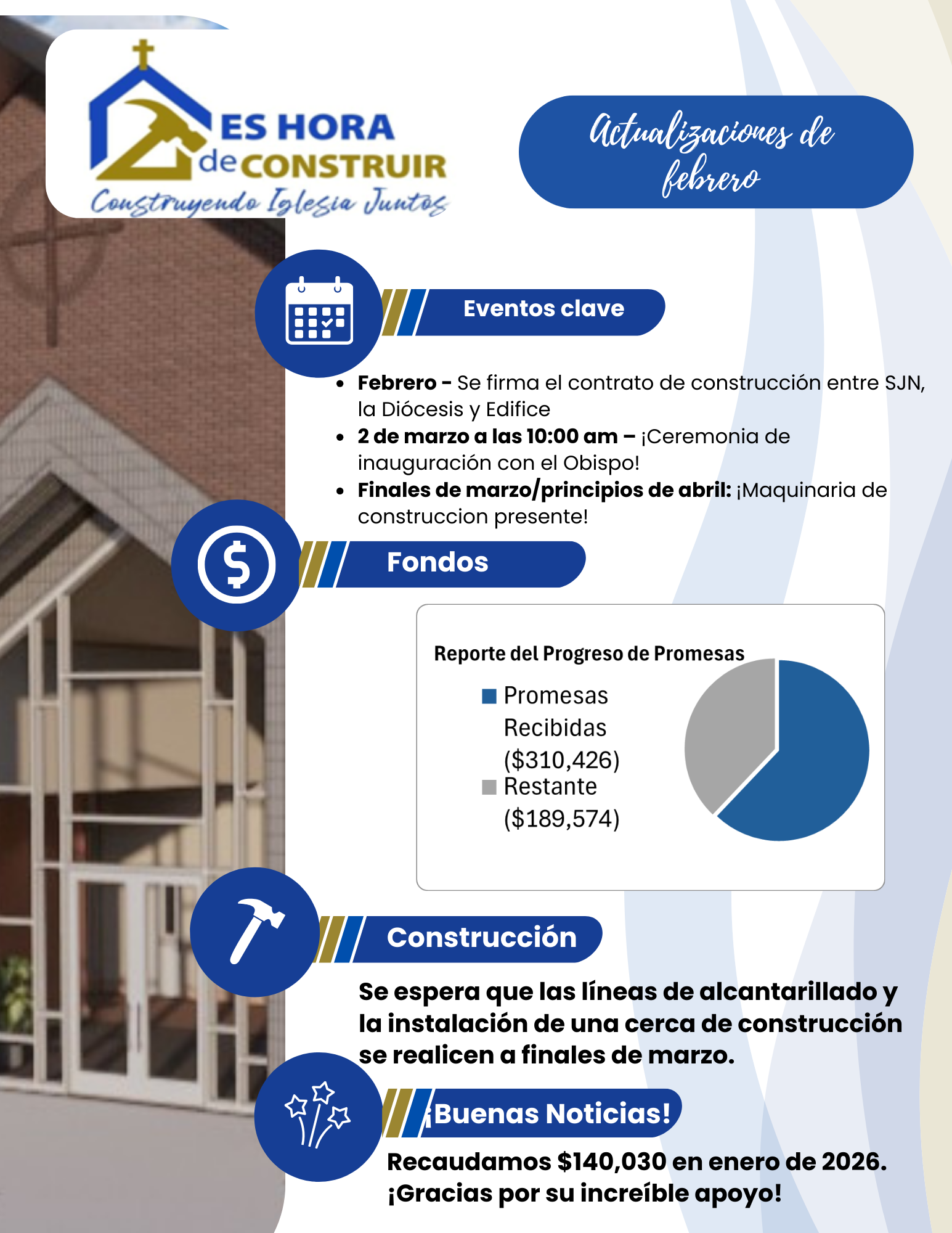 To truly bring our vision to life, we welcome every additional gift or pledge, big or small. Together, we're building something extraordinary for the future of our parish, and we're so grateful for your belief in this incredible journey!